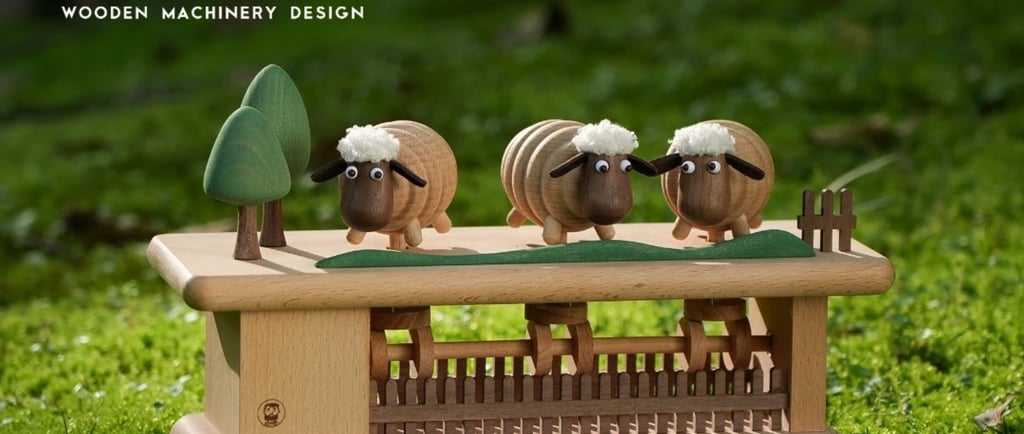 The Enchanting Wooden Mechanical Toy Featuring Three Adorable Sheep